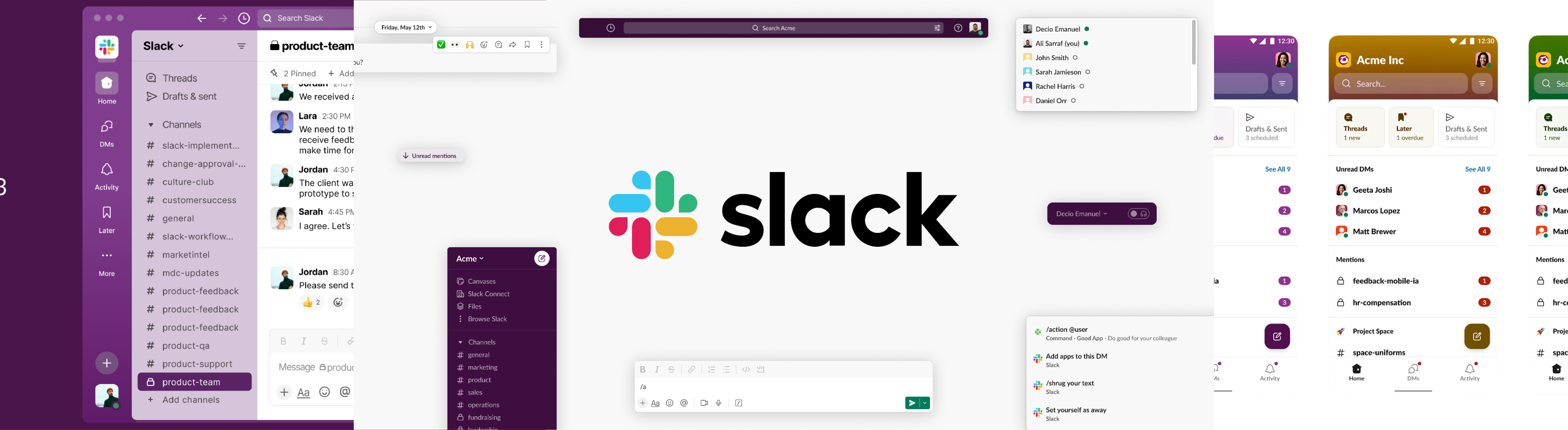 Slack’s brand perception is shaped by a clear and consistent design hierarchy across product, marketing, and content. Predictable typographic structure, generous spacing, and strong figure ground relationships reinforce clarity and approachability, supporting positive brand perception even as the platform scales.