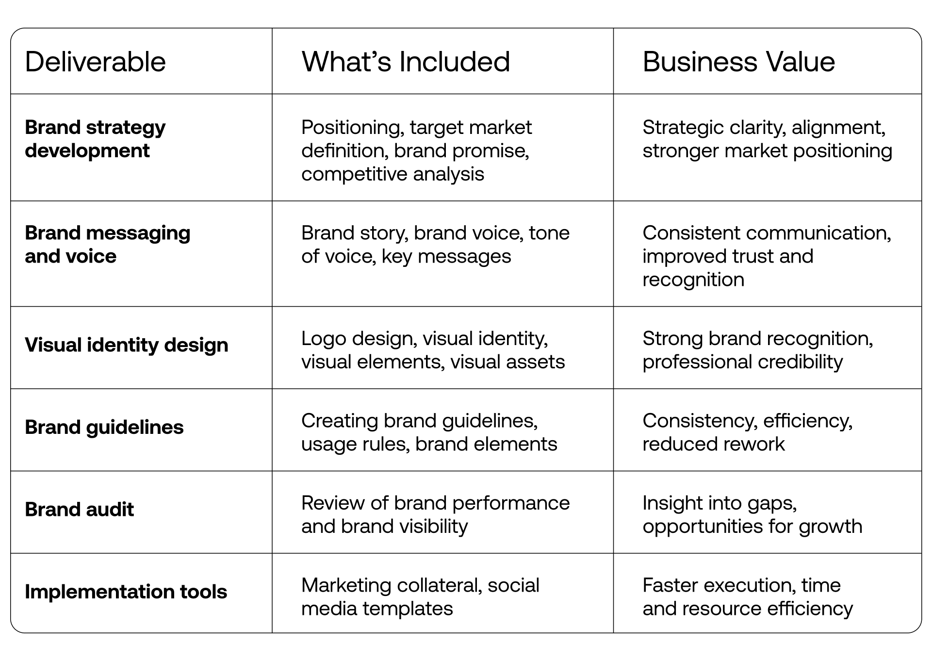 What services are included in branding?