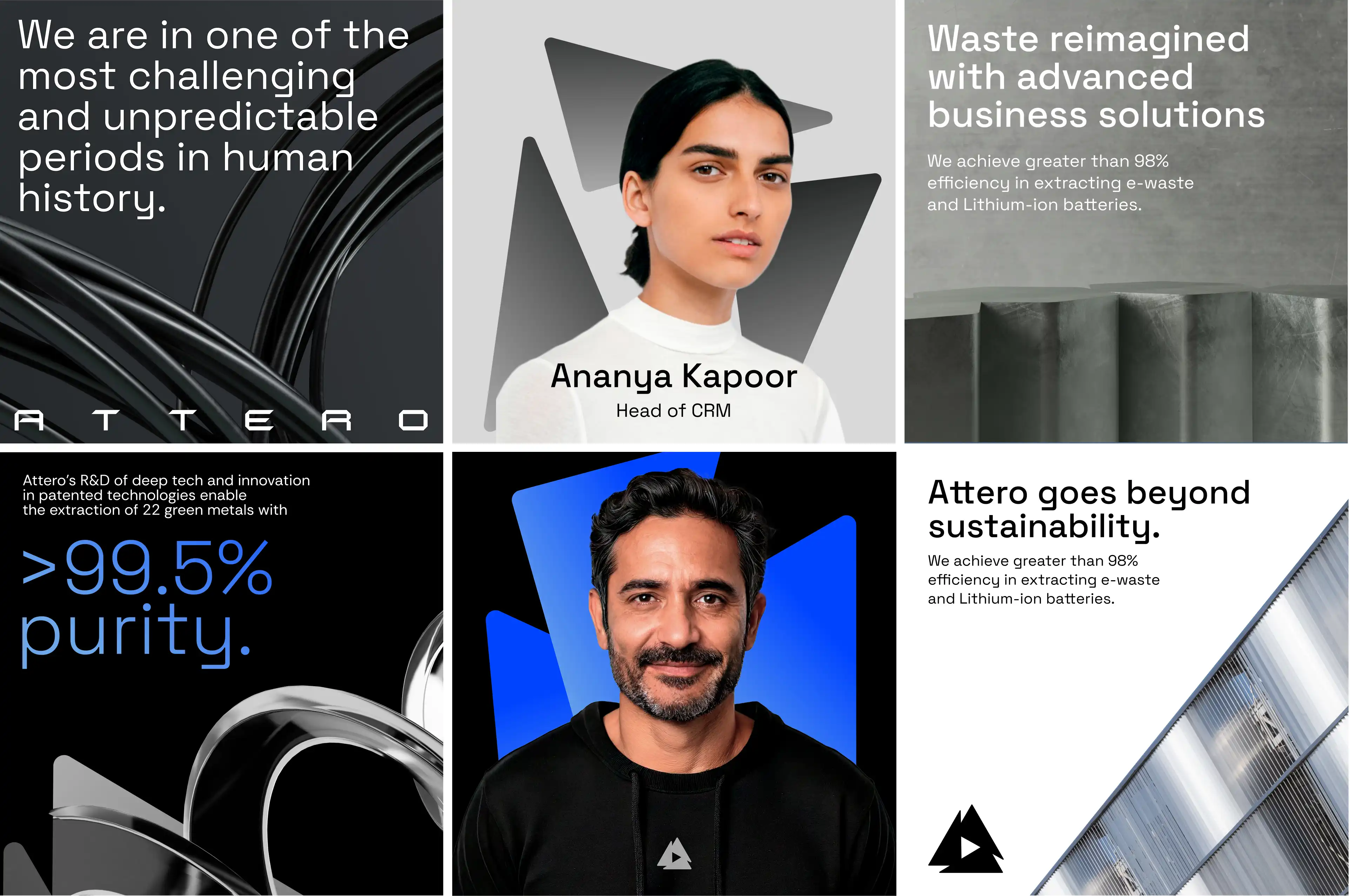 The global e-waste crisis is escalating, with 62 million tonnes generated in 2022 and less than 20% recycled. This urgent problem demands innovative solutions, and Attero is uniquely positioned to lead the charge. However, their existing brand identity fell short of reflecting their ambition and the scale of their work. As they evolved from a traditional recycler to a global tech innovator, Attero needed a bold new brand strategy and identity to showcase their role in driving a regenerative, circular economy. The challenge was clear: to transform how the world sees Attero and magnify their vision for turning waste into valuable resources.