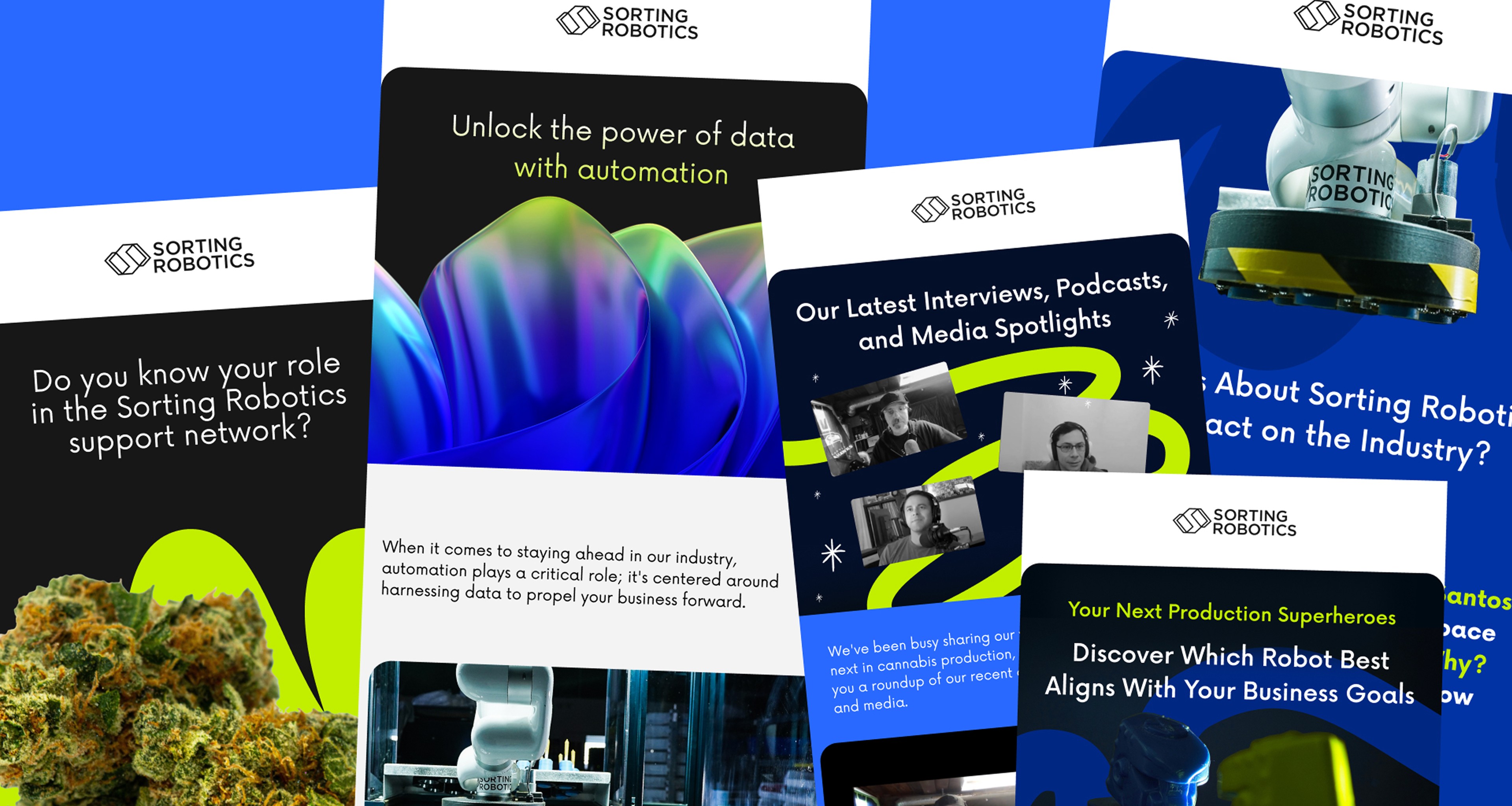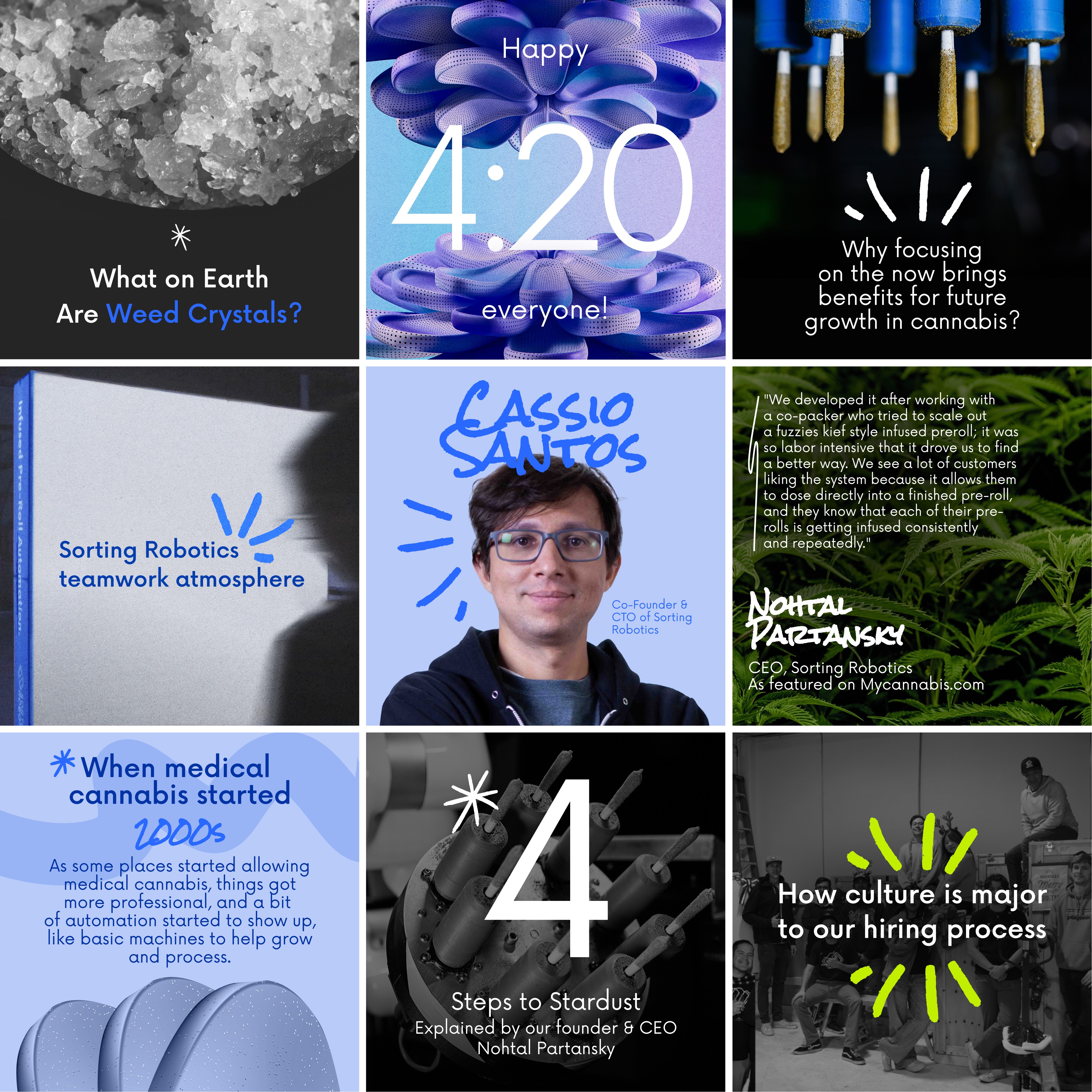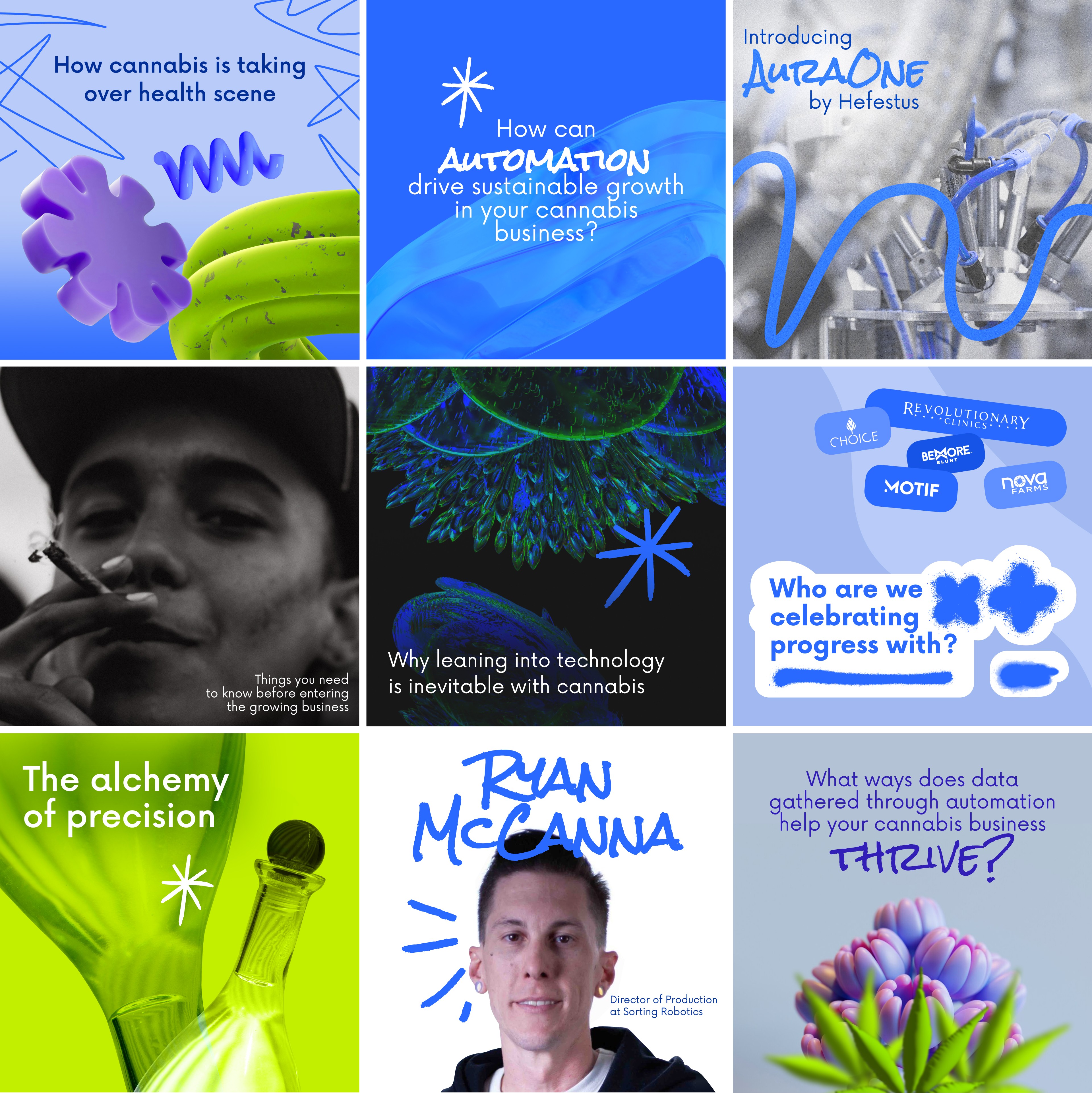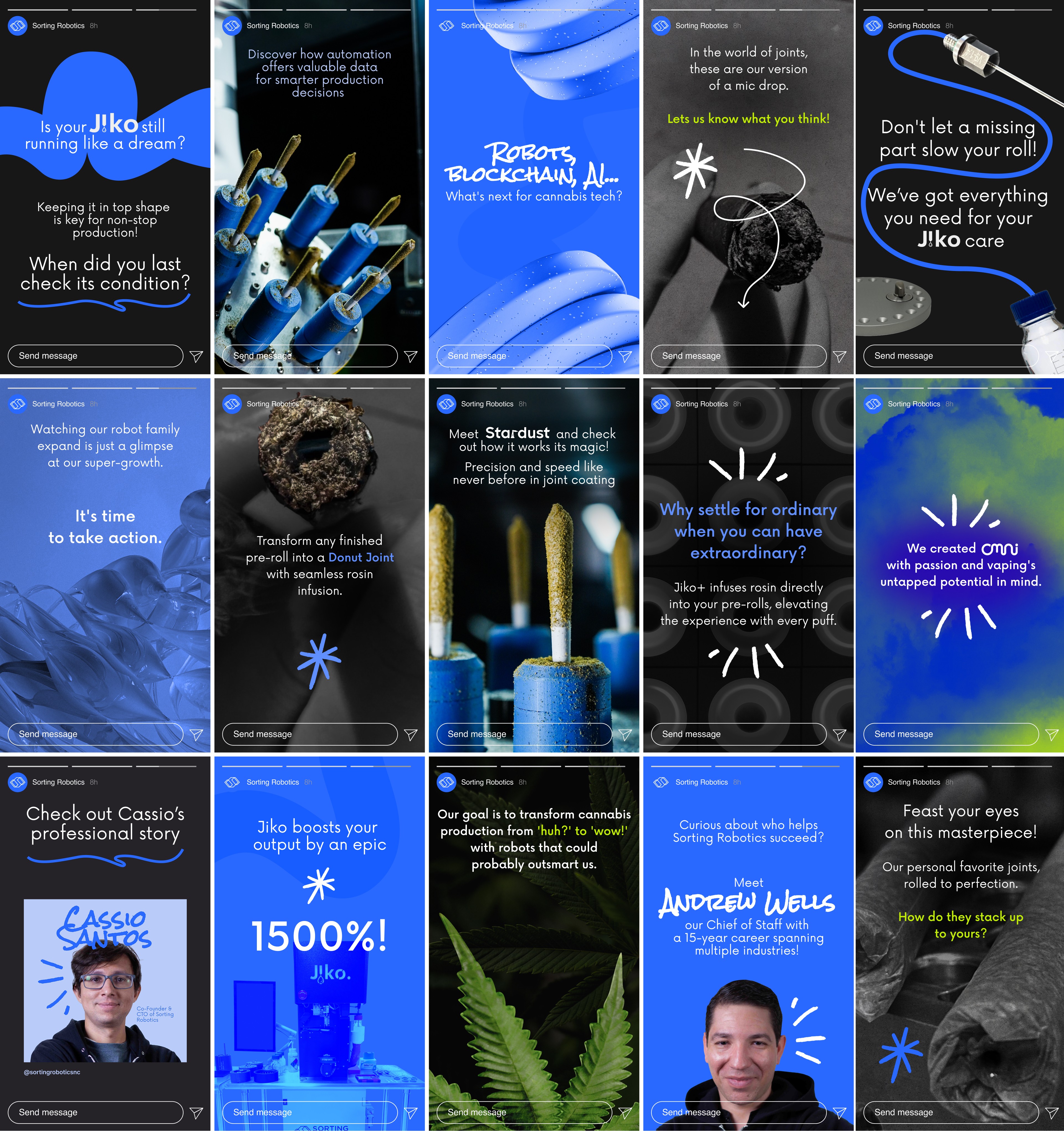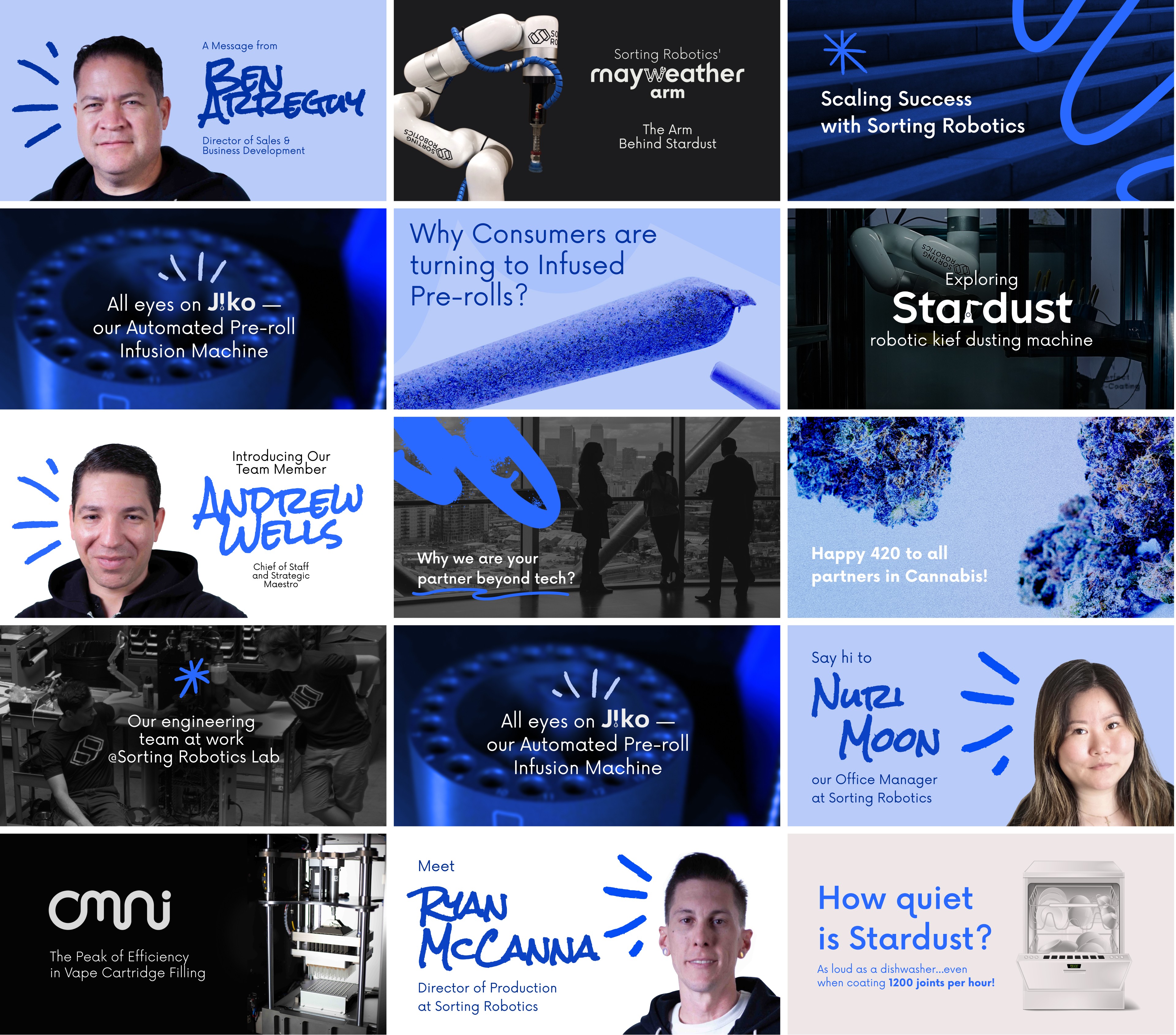 Sorting Robotics builds advanced hardware and software for the cannabis industry, led by a team of former NASA engineers. The product ecosystem is highly modular, built for operators who are running facilities, not reading manuals. The cannabis market itself is fragmented and decentralised, with regulations, formats, and business models shifting from state to state. The core challenge was to explain a complex product lineup to very different audiences across Instagram, LinkedIn, and email: founders, production managers, investors, and industry partners. Sorting Robotics needed a content and communications system that could translate engineering-level benefits into clear, visual stories, consistently, month after month.